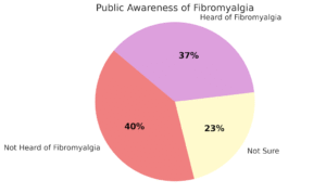 Public awareness of fibromyalgia remains low, with 40% of people reporting they have never heard of the condition, and only 37% confirming they are aware of it. Increasing fibromyalgia awareness is essential to improve support and understanding for those living with chronic pain.